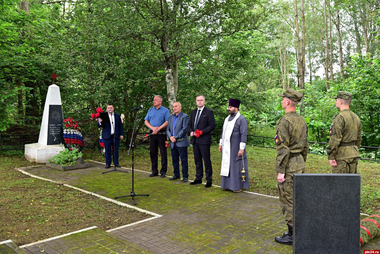 Дмитрий Быстров отметил, что братское захоронение у деревни Вельяшиха – одно из крупных на территории Островского муниципального округа. В этой братской могиле захоронены останки более 1500 погибших солдат и офицеров Советской Армии, защищавших Островскую землю.