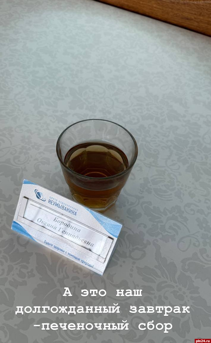«Утро начинается с приема соды. Затем своеобразный завтрак - почечный сбор и таблетка ламинарии. Ужин ещё скромнее - печеночный сбор. Раз в два дня особая радость: нам дают термос с настоем на основе чернослива, кураги и лимона. Вот и всё», - рассказала Оксана Федорова.