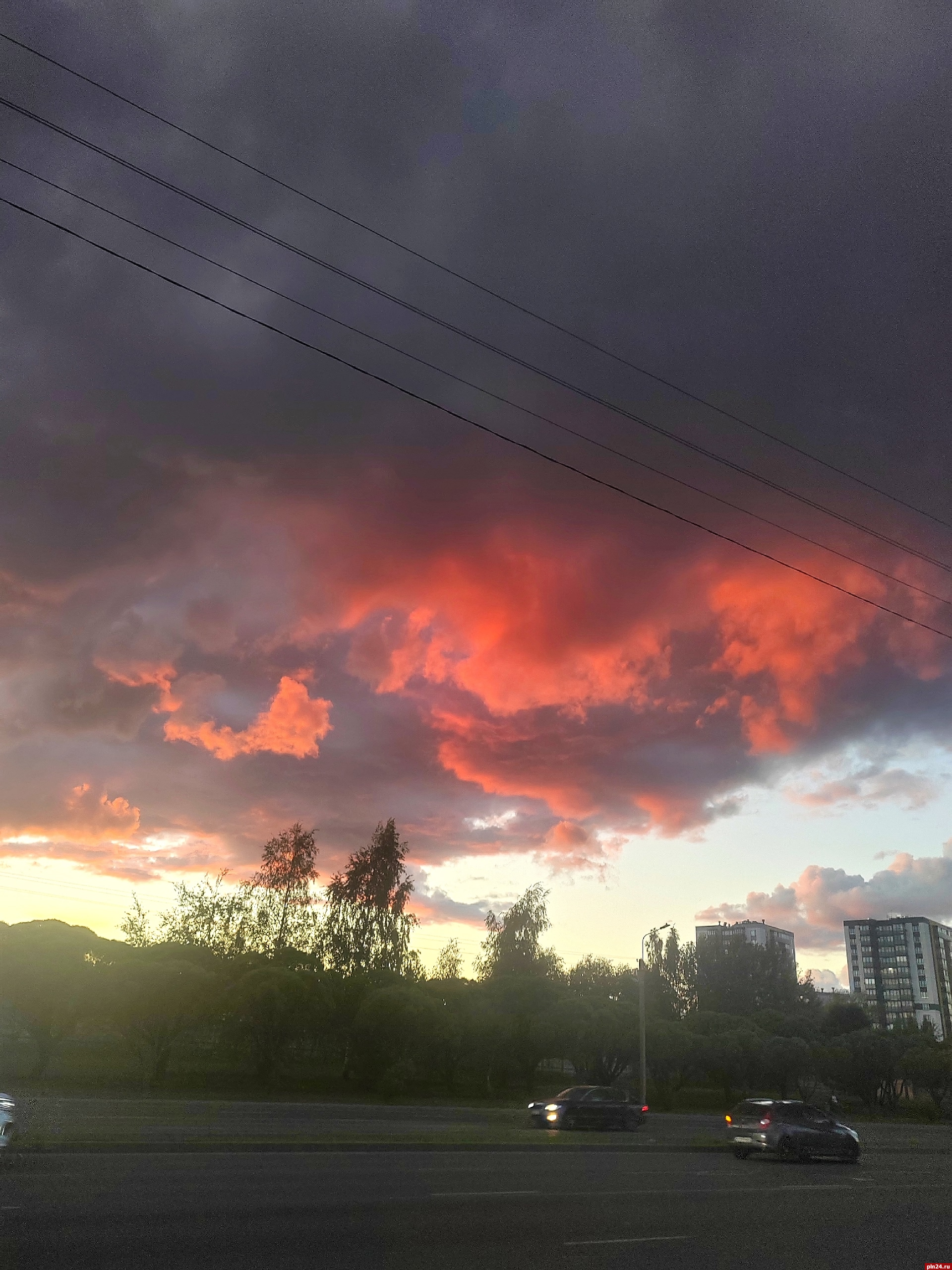 Фотографиями красных облаков делятся псковичи в группе «Жесть по-псковски» в соцсети «ВКонтакте».