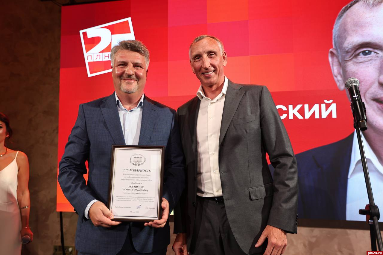 Благодарность объявили директору ООО «Гражданская пресса» Максиму Костикову за весомый личный вклад в развитие информационного пространства и средств массовой информации Псковской области, высокий профессионализм и в связи с 25-летием Псковской Ленты Новостей.