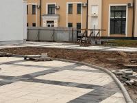 Вокруг здания убрали забор, благодаря чему стала видна новая уложенная площадка.