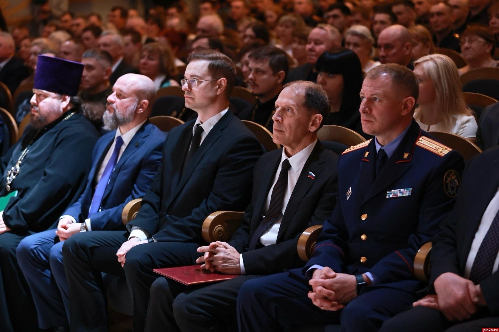 Торжественное собрание, приуроченное сразу к двум знаменательным датам - 10-летию Федеральной службы войск национальной гвардии Российской Федерации (Росгвардии) и 215-й годовщине войск правопорядка - состоялось в Псковском академическом театре драмы имени Александра Пушкина, передаёт корреспондент Псковской Ленты Новостей.
