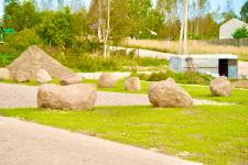 На месте строительства площадок ранее было неприглядная болотистая территория. Подрядчик выполнил необходимые мероприятия по водоотведению, подсыпке щебнем и грунтом, наметил пешеходные дорожки уложил декоративные валуны.