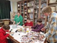 Проходя испытания, гостям библиотеки необходимо придумать мем про библиотеку, найти книгу, собрать карту Псковской области, сделать куклу-оберег в народном костюме, помыть страницы из книги, пройти викторину.